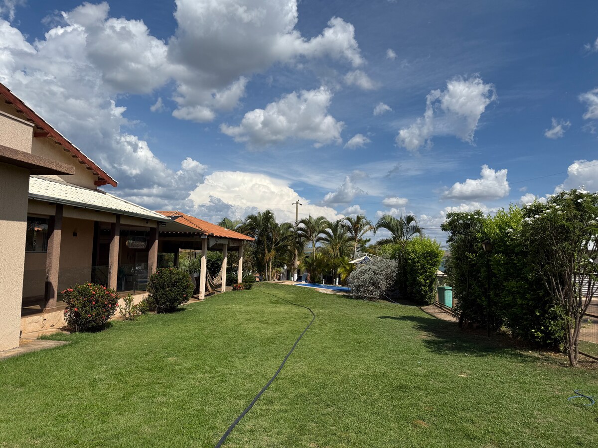 Evimizde unutulmaz bir konaklamanın tadını çıkarın. İki konforlu süit, dahili mutfak ile birleştirilmiş oturma odası ve barbekü için ideal bir dış mutfak. Güve ve jabuticabeira ağaçlarının bulunduğu güzel bir bahçede dinlenin veya hidromasaj ve şelale ile ısıtılmış havuzun tadını çıkarın. 4 araçlık otopark ve geniş çim alan konforu garanti eder. Yerel turistik yerlere yakın olan evimiz, huzur ve eğlence arayan aileler ve gruplar için mükemmeldir. Gelin ve eşsiz ve özel anlar yaşayın!