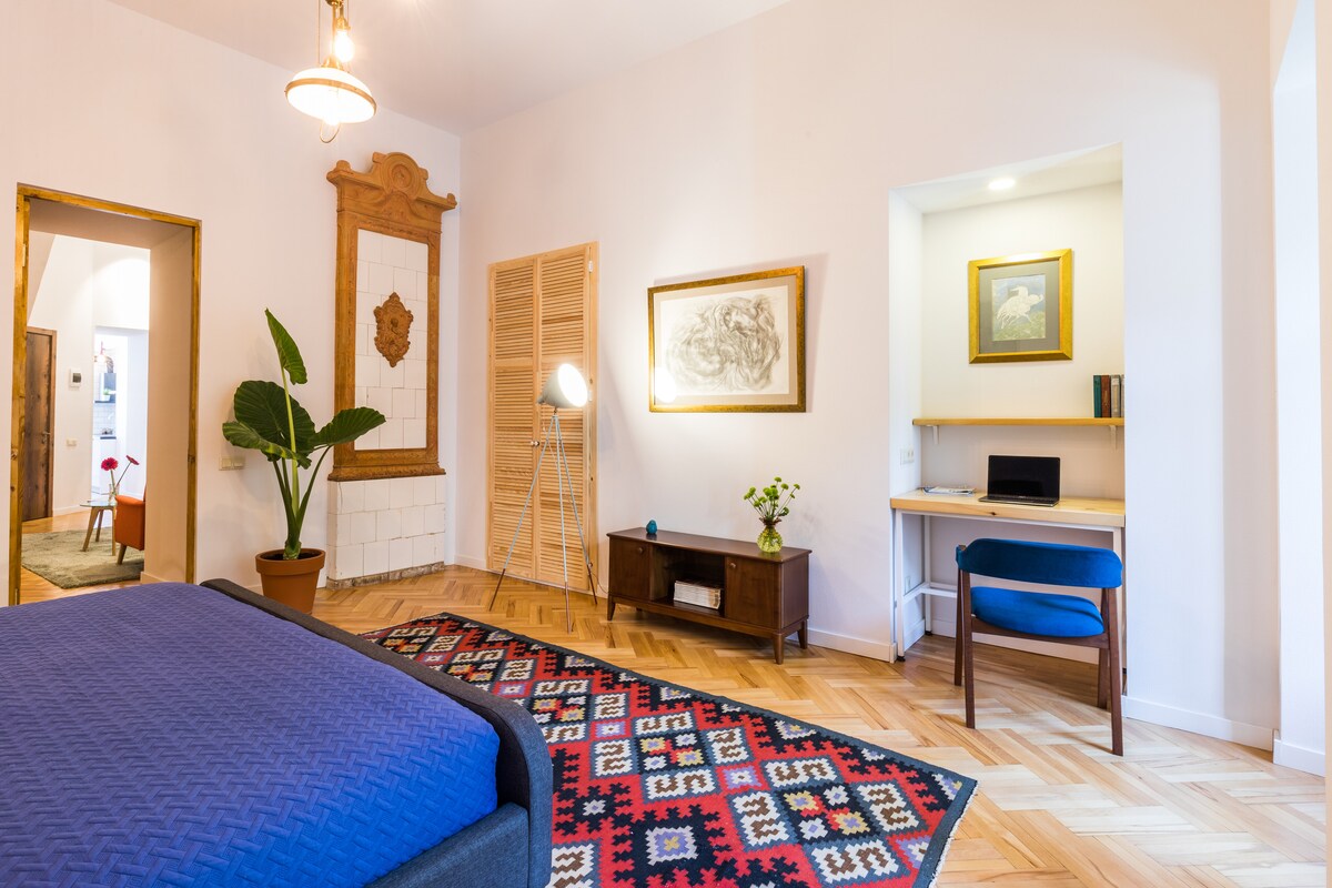 Tiflis'in göbeğinde geniş bohem 2 yatak odalı daire