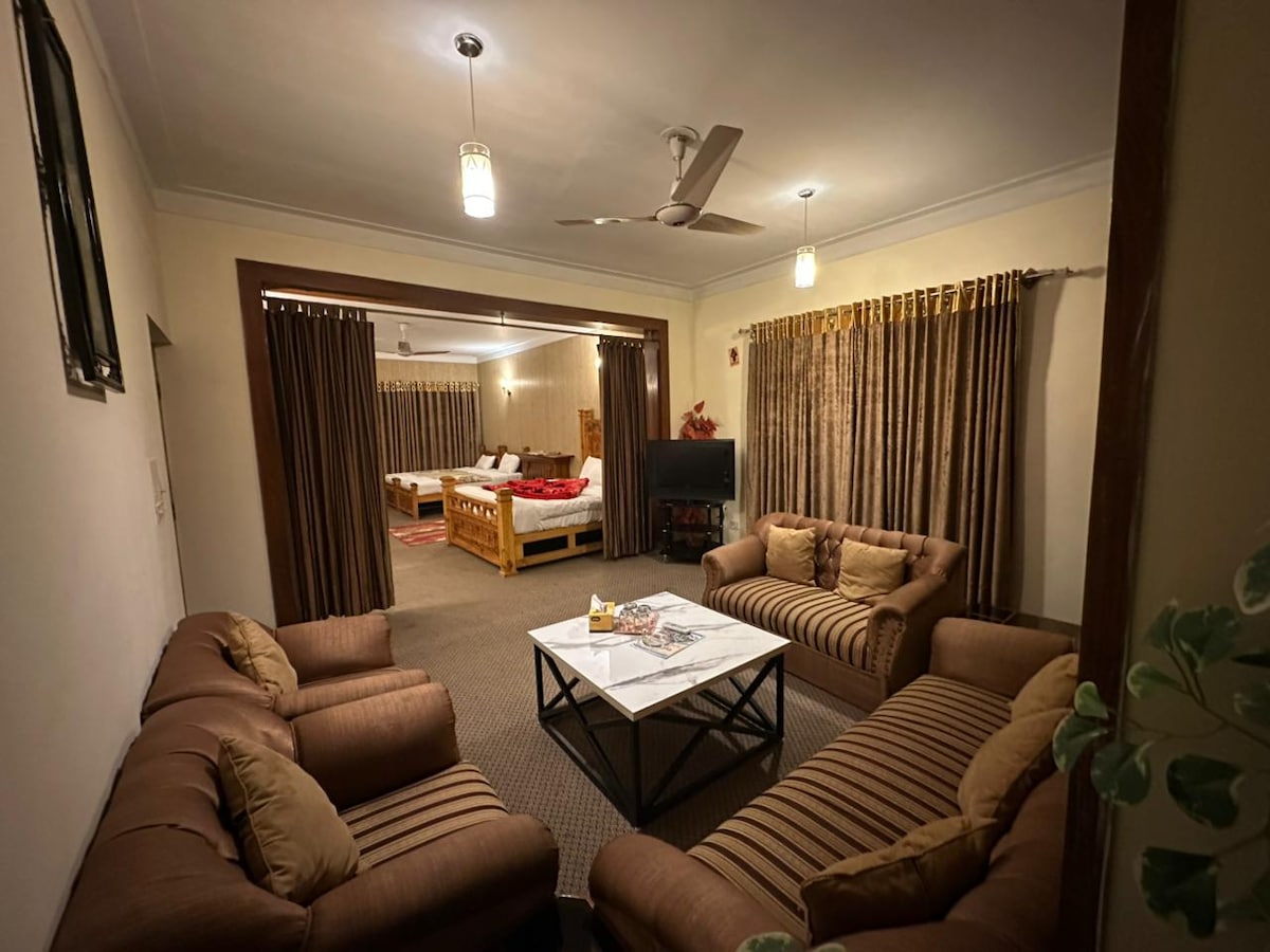 Alışveriş Merkezi Yolu'na ve diğer popüler turistik yerlere arabayla 15 dakika mesafede yer alan bu daire, dinlenmek isteyenler için idealdir. Bu rahat ve ferah iki yatak odalı daire konforlu bir yaşam deneyimi sunuyor. Daire geniş bir yaşam alanına, rahat yatakları olan iyi döşenmiş iki yatak odasına ve bitişik banyoya sahiptir. Aileler veya küçük gruplar için ideal olan bu daire, güzel yeşil Murree'nin vadi manzarasına sahip, dinlendirici bir konaklama için tüm olanaklarla sade bir atmosfer sağlar.