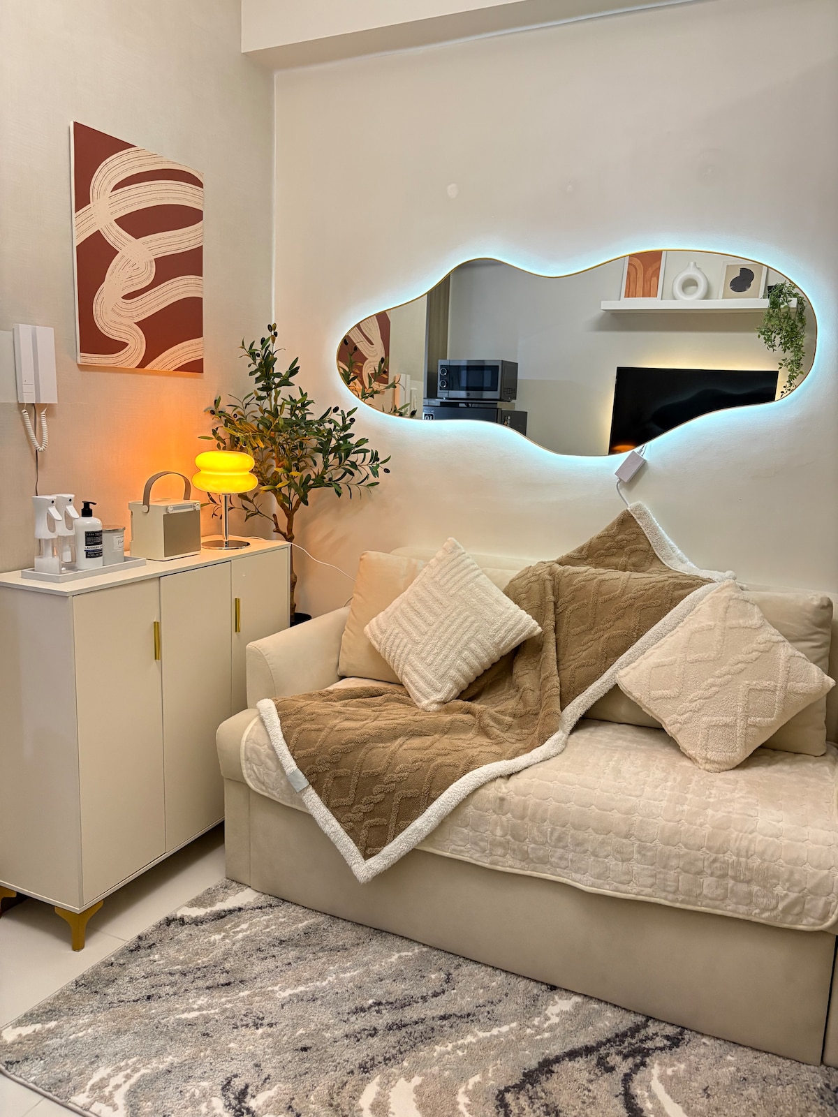 NAIA Terminal 3 ve Runway Manila'ya sadece 5 dakika uzaklıktaki rahat köşe stüdyo ünitesi. Havaalanı manzaralı, rahat yataklı, ücretsiz Netflix'li akıllı TV ve hızlı kablosuz internet bağlantısı olan aydınlık bir alanın keyfini çıkarın. Misafirler ayrıca havuza, spor salonuna ve oyun alanına ücretsiz erişebilir, bu da burayı aktarma, kısa kaçamaklar veya şehir konaklamaları için mükemmel hale getirir.