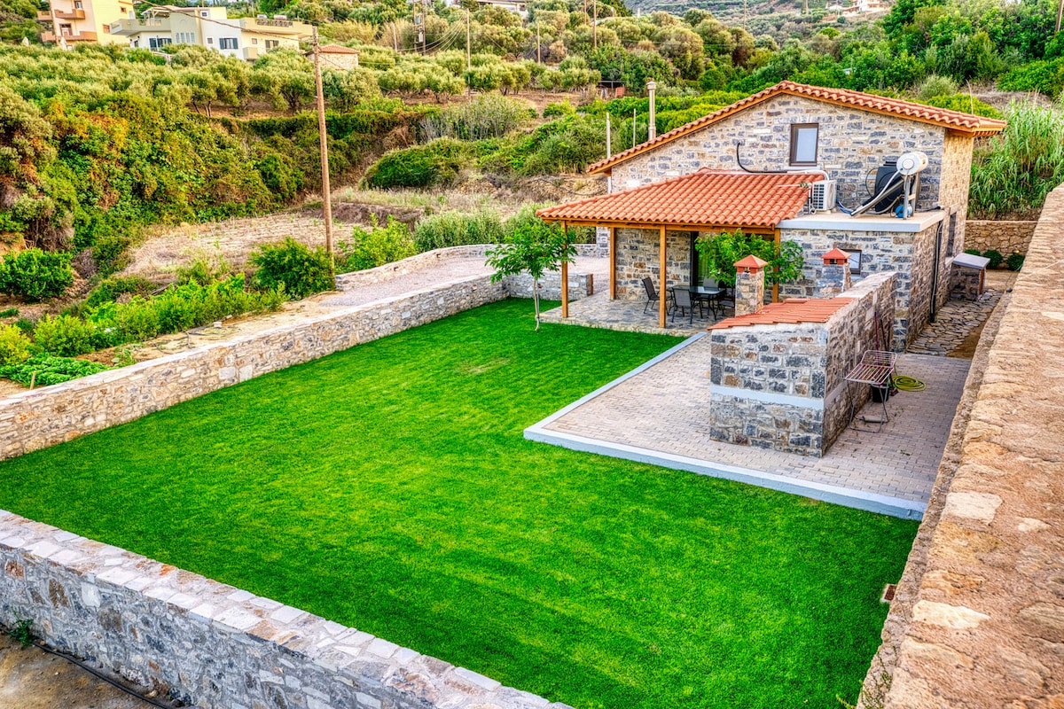 Sessiz ve tenha bir köyde, zeytinlikler ve koyun çiftlikleri arasında efsanevi İda Dağı'nın eteklerinde inşa edilmiş bu muhteşem villadan parlak Akdeniz güneşi altında dinlenin, muhteşem Girit manzarasının yanı sıra fantastik bir deniz manzarasının tadını çıkarın.