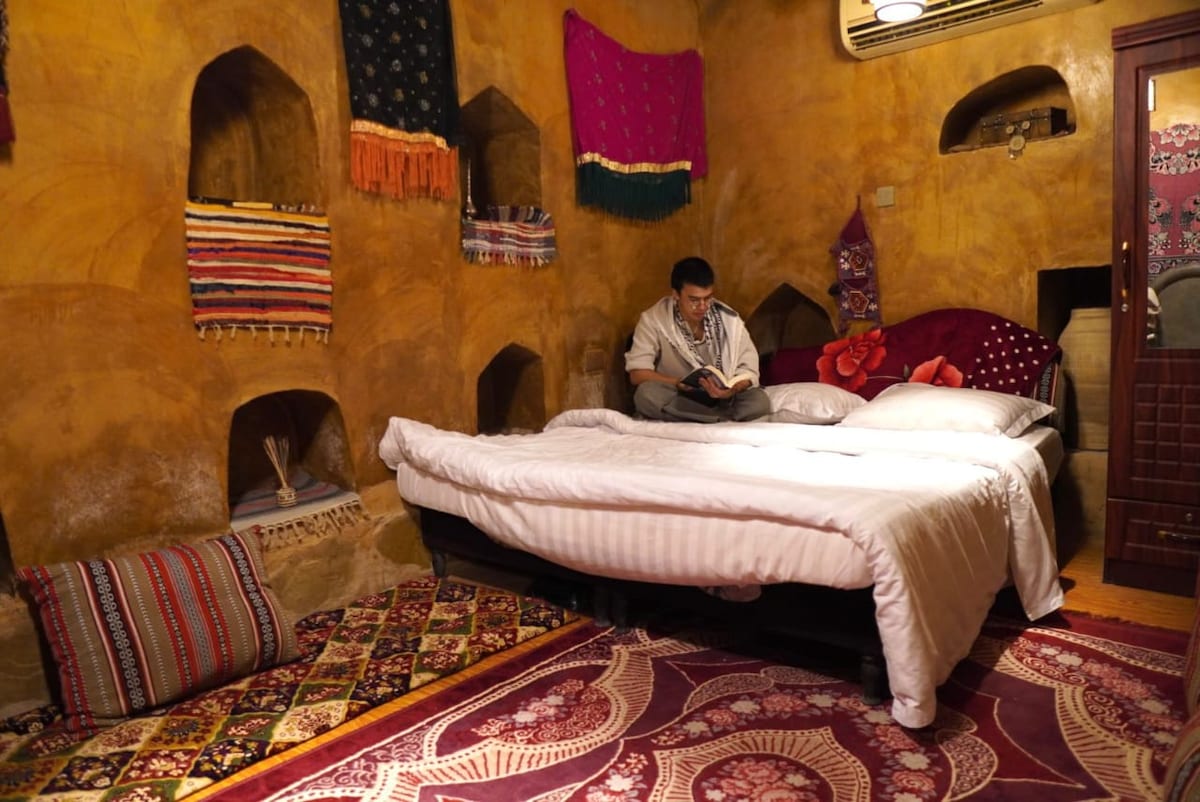 Palmiye bahçeleri ile Aflaj'ın pınarları arasındaki başkentlerin koşuşturmacasından uzak bu eşsiz ve sakin evde rahatlayın. Büyüleyici manzaralar ve sessiz bir yer... Benzersiz bir deneyim, vadide özel bir ortamda banyo yapmanızı sağlar