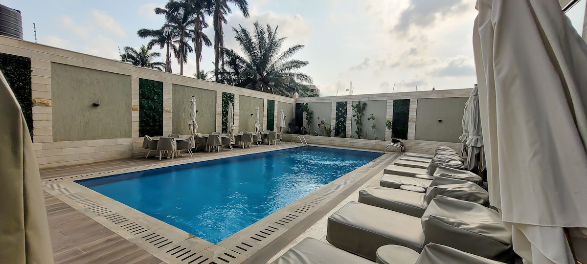 We are located right in the heart of Accra and in a very serene ambiance. This executive room en-suite is only 25-30 minutes drive away from the airport. It's fully furnished with wifi & backup generator, you'll also have full access to all facilities. Perfect for short and long stay travellers, whether it's for business or leisure. You'll have a comfortable house/apartment with all amenities. We would be delighted to have you as our guest! Take it easy at this unique and tranquil getaway.