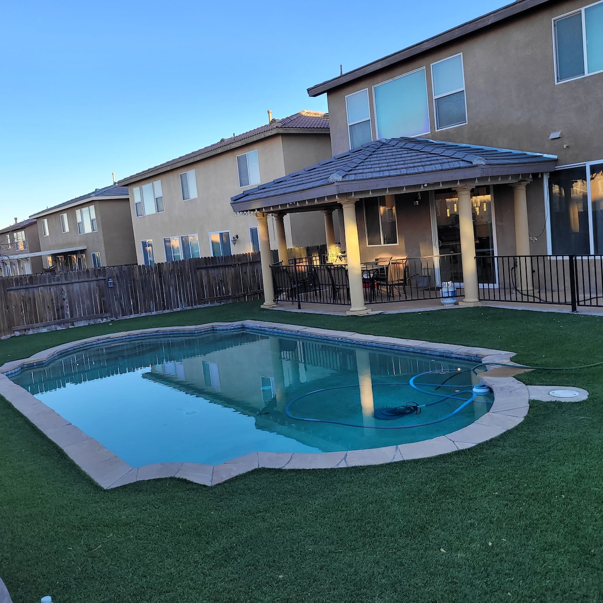 Tüm ailenizle dinlenin! Geniş 3 yatak odası + misafir odası/iki 1/2 banyolu ev. Güvenli ve samimi, merkezi konumlu bir toplulukta bulunmaktadır. Evin tamamı, vurgular ve mobilyalarla konforlu yaşamın gerçek tanımıdır. Tam donanımlı ev, kablosuz internet bağlantısı, akıllı TV, kahve makinesi, çamaşır makinesi + kurutucu, havuz, barbekü, ateş çukuru ve daha fazlasıyla konforlu bir yaşam sunar! Restoranlara, Victor Valley Alışveriş Merkezi'ne, Scandia'ya, sinemalara, 15 FWY, 395 HWY, Ontario Mills ve Havalimanı'na yakındır.