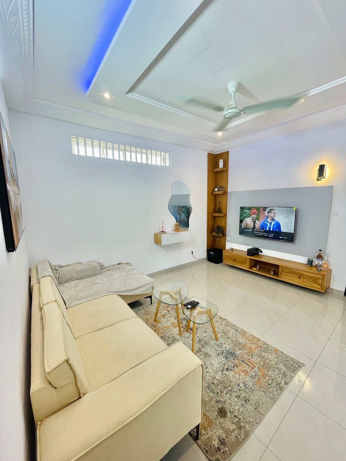 Her detayı size huzurlu, konforlu ve unutulmaz bir konaklama sunmak için tasarlanmış, deniz kenarındaki evinize hoş geldiniz. Bu aydınlık koza, denizden ve yeni Corniche de Cotonou'dan sadece birkaç adım uzakta otantik cazibe ve çağdaş zarafeti birleştiriyor. Terasta yerleşin, yumuşak deniz havasının sizi yatıştırmasına izin verin ve mavi ufka bakan mutlak bir rahatlama anının tadını çıkarın.