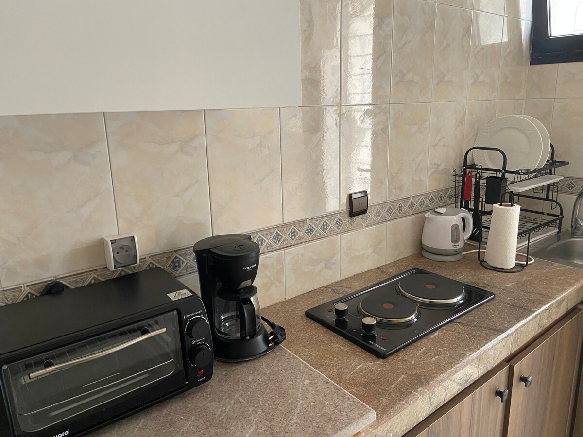 Rabat'ın hareketli Agdal semtinde bulunan rafine stüdyomuza hoş geldiniz. Her detay konforunuz için tasarlanmıştır: kaliteli yatak takımları, kasalı büyük dolap, Nespresso makinesi ile donatılmış mutfak ve kanepe ile dinlenme alanı, 55 inç TV, Bose Bluetooth istasyonu ve yüksek hızlı internet. Modern banyo ve nevresimler sağlanmaktadır. Kafelere, restoranlara, mağazalara, ulaşım ve tren istasyonuna yakın olan bu stüdyo, tarz ve kolaylığı birleştiriyor.