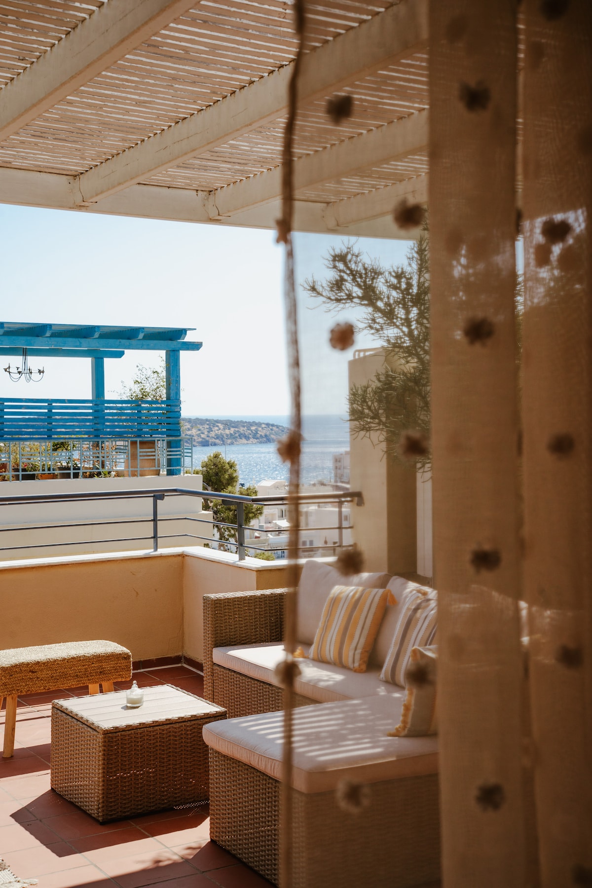 Özel balkonunuzun konforundan muhteşem Mirabello Körfezi ve Ege Denizi'nde gözlerinizi şenlendirin. Güzel dairemizde konforlu bir konaklama için ihtiyacınız olan tüm olanakları bulacaksınız. 4 yetişkin barındırır. 2 çekyatlı geniş oturma odası, tam donanımlı küçük mutfak, klima, 1 yatak odası, 1 banyo, kablosuz internet bağlantısı, ücretsiz otopark. Sevgi ve yepyeni mobilyalarla yakın zamanda yenilenmiş ve dekore edilmiştir. Benzersiz bir deneyim için keşfedilecek muhteşem kasaba ve çevre. Plaja 6 dakika yürüme, Havaalanına arabayla 40 dakika.