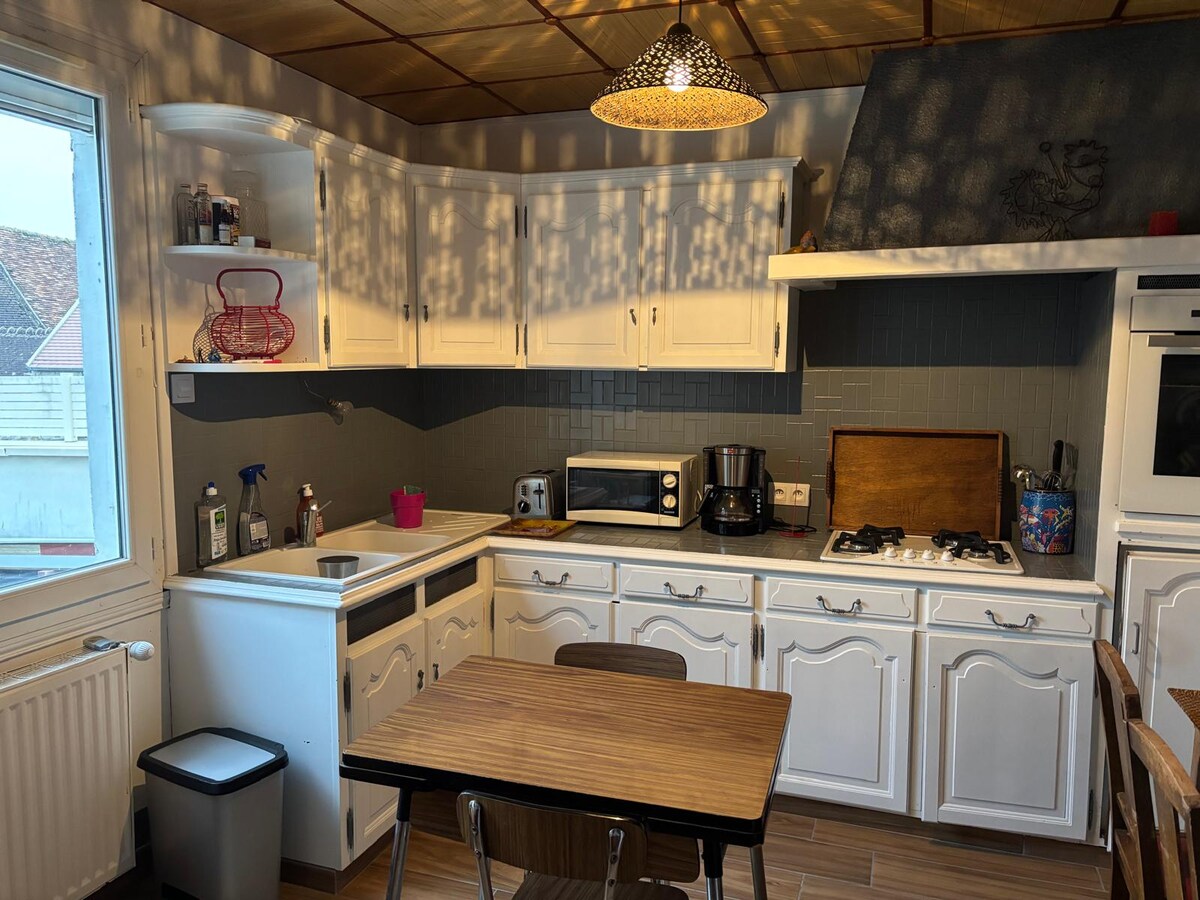 Beauvais-Tillé havaalanına 12 dakika mesafede, sakin bir köyde bulunan büyüleyici bir ev✈️. Konut tamamen yenilenmiştir ve yeni ve donanımlı bir mutfağa sahiptir. Fiber internet bağlantısı ve HD TV 🚀hizmetinizdedir. Ev bağımsızdır ancak evimizle büyük bir ortak bahçeyi paylaşır. Bizler mütevazı ve yardıma hazır ev sahipleriyiz. Konaklamanızı daha keyifli hale getirmek için elimizden geleni yapacağız. Araç şarjı seçeneği⚡️ 🚨Partiler ve Akşamlar Yasaktır