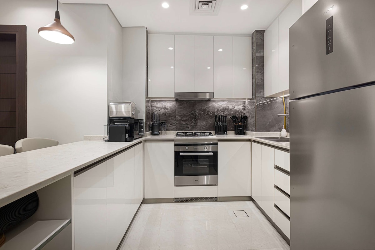 Burj Khalifa ve Dubai Fountains'a bakan nadir ferah bir mücevherde kalın. Grande Signature Residences'da yer alan bu zarif dört yatak odalı daire, Dubai Mall'a sadece birkaç adım uzaklıkta lüks, konfor ve nefes kesen manzaraları harmanlıyor. Açık yaşam alanlarının, havuzun, spor salonunun ve aile bölgelerinin keyfini çıkarın ve unutulmaz bir konaklamada şehir merkezindeki yaşamın en iyisini yaşayın.