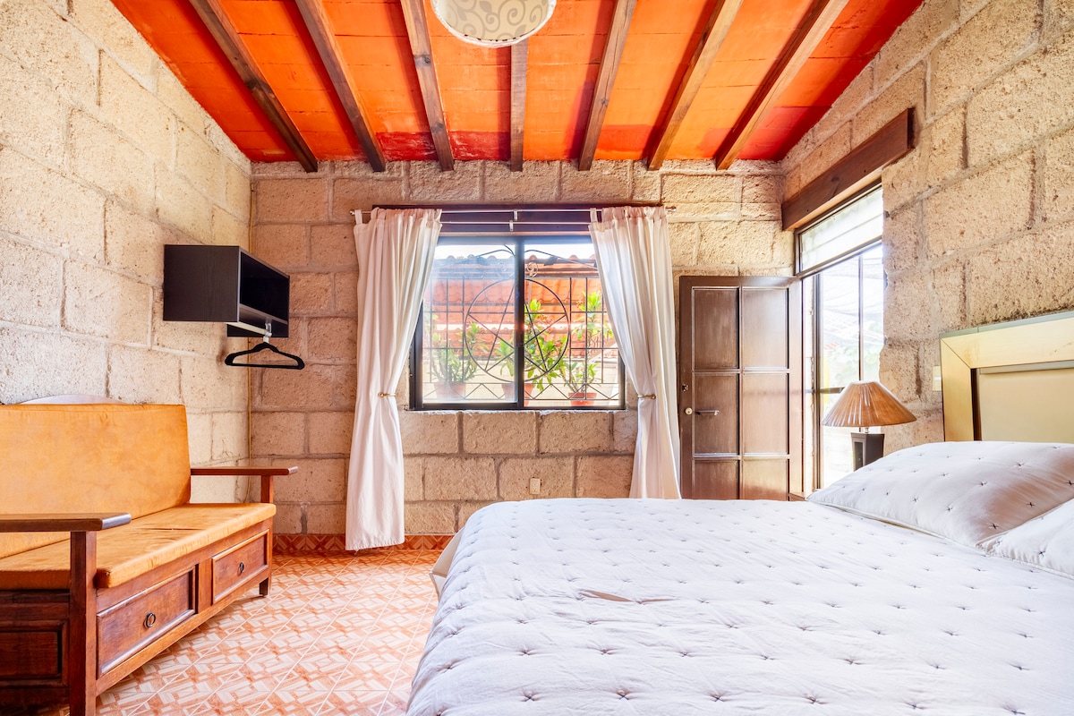 Es una cabaña de construcción ecológica ideal para parejas, o una familia, tiene jardín, en su interior encuentras la acogedora arquitectura de madera y adobe, descubrirás cómo todos los espacios fueron diseñados para descansar y disfrutar la convivencia, está ubicada en un típico barrio mexicano a 20min caminando de la plaza principal. A beautiful cabin made from ecological materials, it has a Garden, In the interior you will find how every space was design for resting