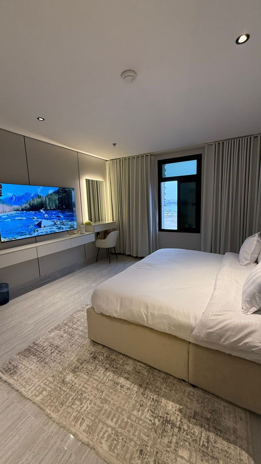 ✨ استديو أنيق ومريح صُمم بعناية ليمنحك إقامة هادئة وممتعة. يتميز بتصميم عصري وأثاث مريح، مع إضاءة جميلة تعطي إحساسًا بالدفء والراحة منذ لحظة الدخول. 🛏️ يحتوي الاستديو على سرير مريح، 🛋️ منطقة جلوس أنيقة، و📺 تلفزيون ذكي، بالإضافة إلى 🌿 بلكونة خاصة مثالية للاستمتاع بالقهوة ☕ أو الأجواء الهادئة بعد يوم طويل. 🚿 الحمام نظيف وحديث مع مستلزمات ضرورية للنزلاء. 👤👫 الاستديو مناسب للأفراد أو الأزواج، ويوفر خصوصية وراحة تامة، مع اهتمام عالٍ بالنظافة ✨ والتفاصيل لضمان تجربة إقامة مم