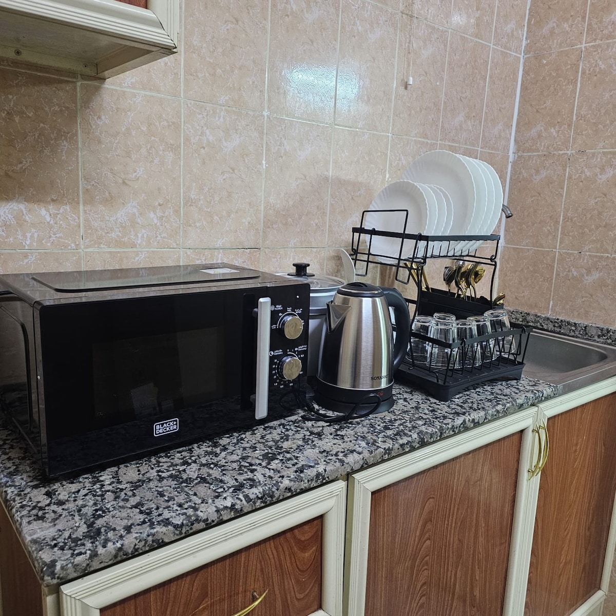 Al Ain'in merkezinde büyük, tamamen mobilyalı 2 yatak odalı bir daire. Hızlı, güvenilir, kablosuz internet bağlantısı mevcut, yayın ve çalışma için mükemmel, ~500 Mbps fiber. Kısa veya uzun süreli konaklamalar için uygun ve mağazalara, restoranlara, kafelere ve alışveriş merkezlerine yakın. Dairede oturma odası, iki banyo ve buzdolabı, ocak ve çamaşır makinesi ile tam donanımlı bir mutfak bulunmaktadır. Her odada klima ve yaşam alanında 65 inç akıllı TV vardır. Kolay giriş kaydı ve hızlı destek ile aileler ve ziyaretçiler için temiz ve kullanışlı.