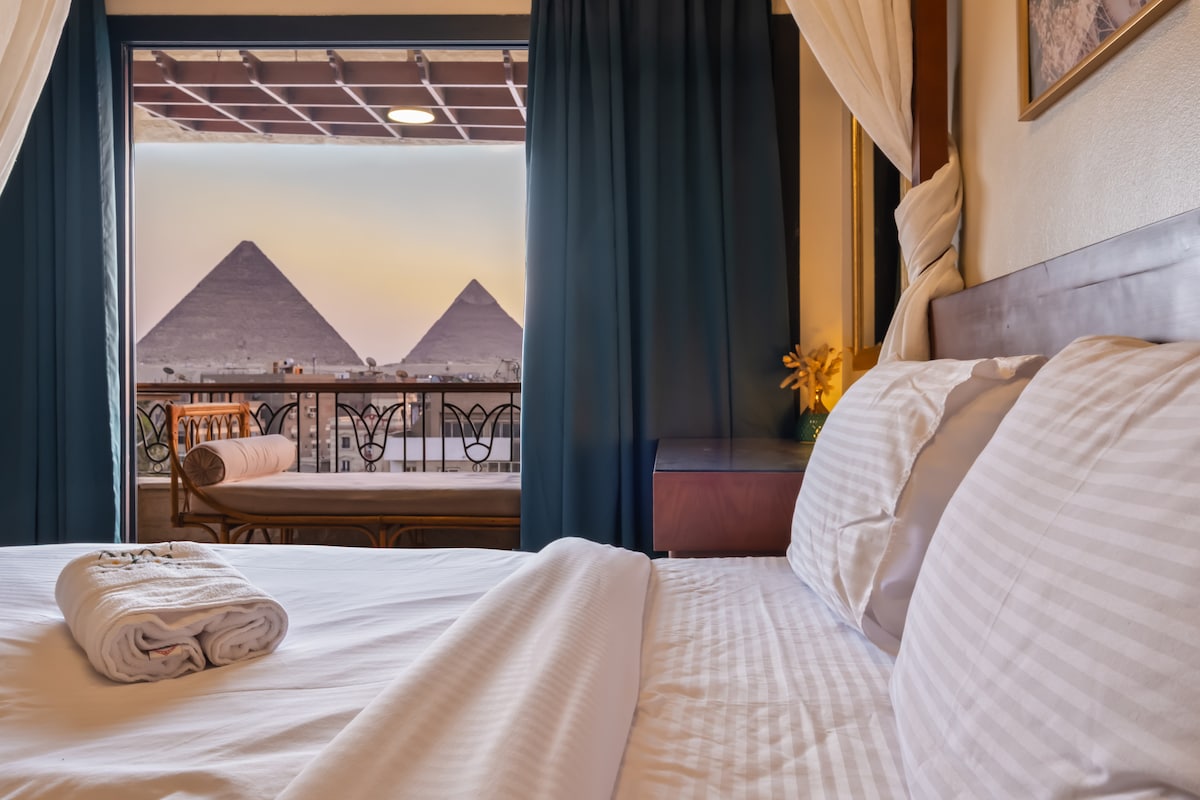 You’ll love the stylish decor of this charming place to Hotel is a sanctuary of comfort and elegance, strategically located to offer the most breathtaking, uninterrupted views of the Giza Necropolis. This hotel is designed for travelers who seek both proximity to the ancient world and the indulgence of modern luxury. Imagine waking up to the sight of the Great Pyramids and the Sphinx, or enjoying a spectacular sunset over the millennia-old monuments—this hotel makes that dream a reality..
