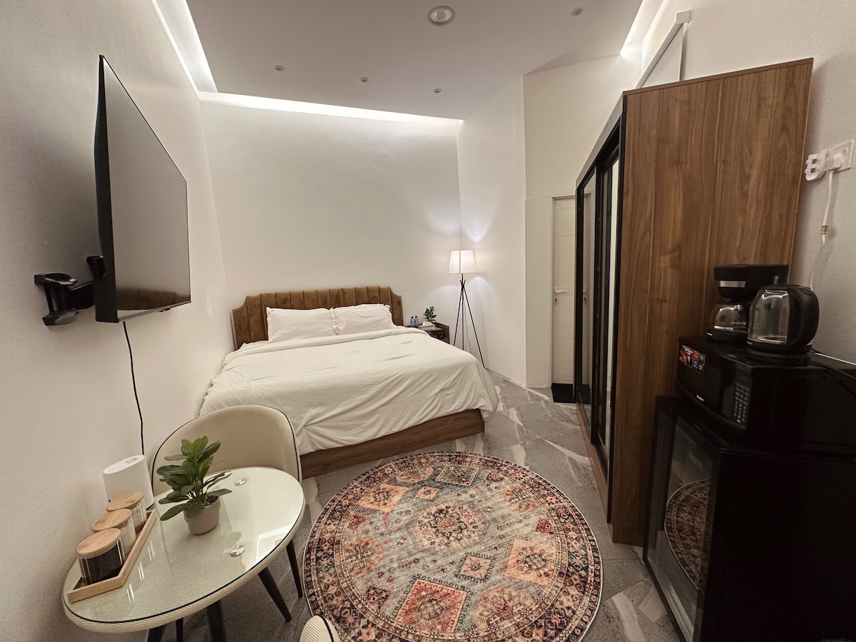 Hızlı kendi kendine giriş kaydı olan konforlu ve sessiz bir stüdyo daire; ana yatak ve kanepe/ekstra yatak; Wi-Fi bağlantısı olan TV ve banyo; tüm hizmetlere, kafelere ve restoranlara yakın; Prens Nayef Havalimanı'na 30 dakika mesafede.