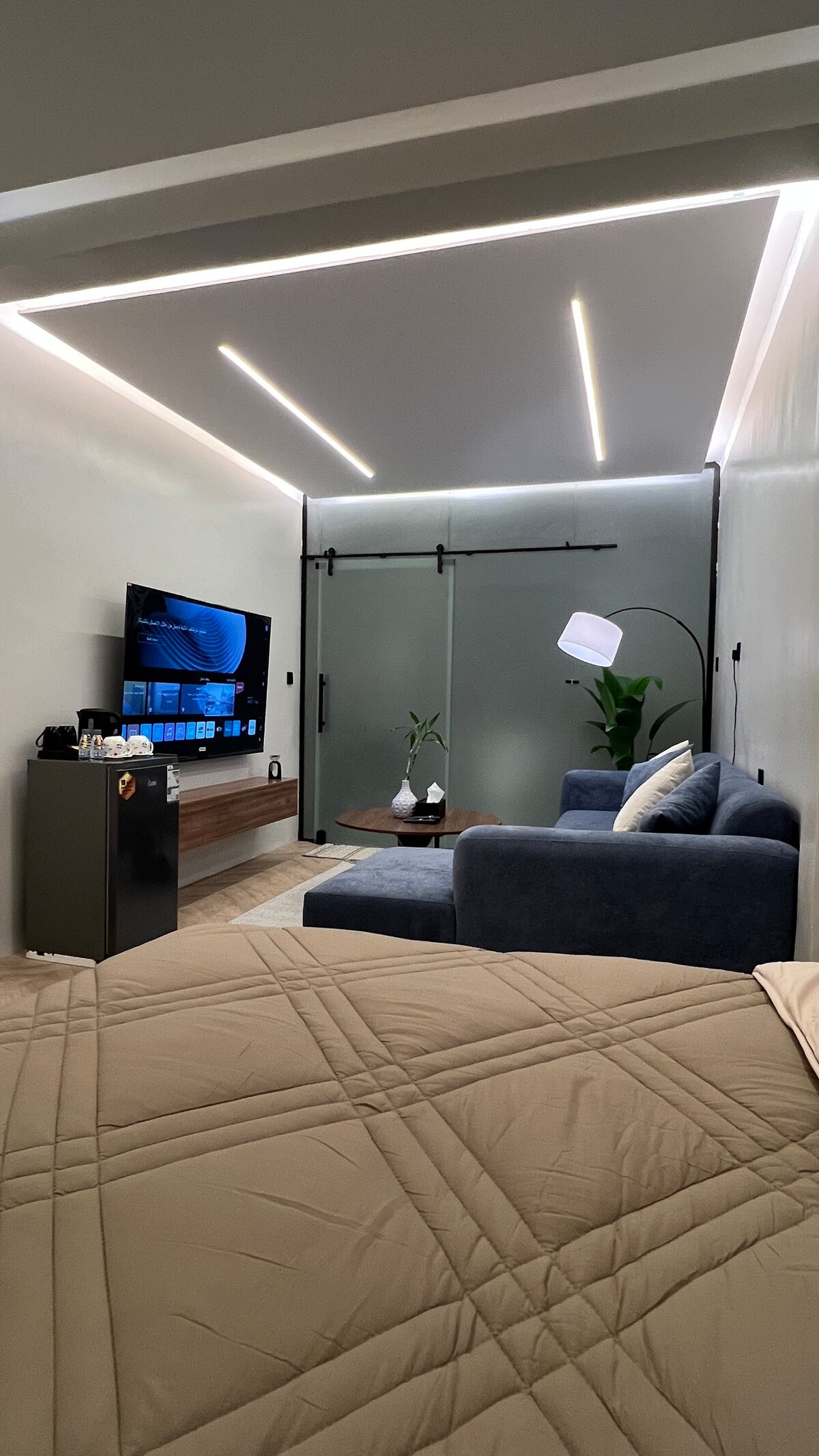 Dinlenme ve konfor sunan özel bir yatak odasında benzersiz bir deneyimin keyfini çıkarın. Dairede bir yatak ve 65 inç akıllı ekran izleyebileceğiniz bir yaşam alanı bulunmaktadır. Ayrıca tüm ihtiyaçlarınızı karşılayacak ayrı bir mutfak ve kahve de bulunmaktadır. Akıllı giriş ve konforlu tasarıma sahip yatak odası ve otel salonu Al-Ahsa Alışveriş Merkezi'ne 5 dakika yürüme mesafesindedir. Kral Abdullah Parkı'na 5 dakika yürüme mesafesindedir. Kral Faysal Üniversitesi'ne arabayla 10 dakika. Güzel Sanatlar Fakültesi'ne arabayla 10 dakika. El-Ahsa Uluslararası Havalimanı'na arabayla 10 dakika. Tren istasyonuna arabayla 15 dakika. Kafeler restoranlara yakın.