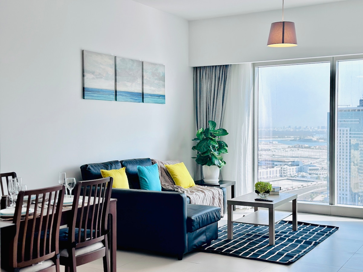 An award winning multipurpose five star developments, A cozy fully furnished, swimming pool & sea view, the living hall has built-in wardrobes for storage, high speed internet is connected, Bose solo, TV cable, siemens cooker & dishwasher, LG Washer dryer, Hitachi refrigerator, the Ikea bed with Ikea mattress & Pad, Ikea sofa bed, recliner chair, Building have 6 lifts and 1 service elevator, Recreational in the podium 3 swimming pools, 5 gym, table tennis and more. feel free to ask me.