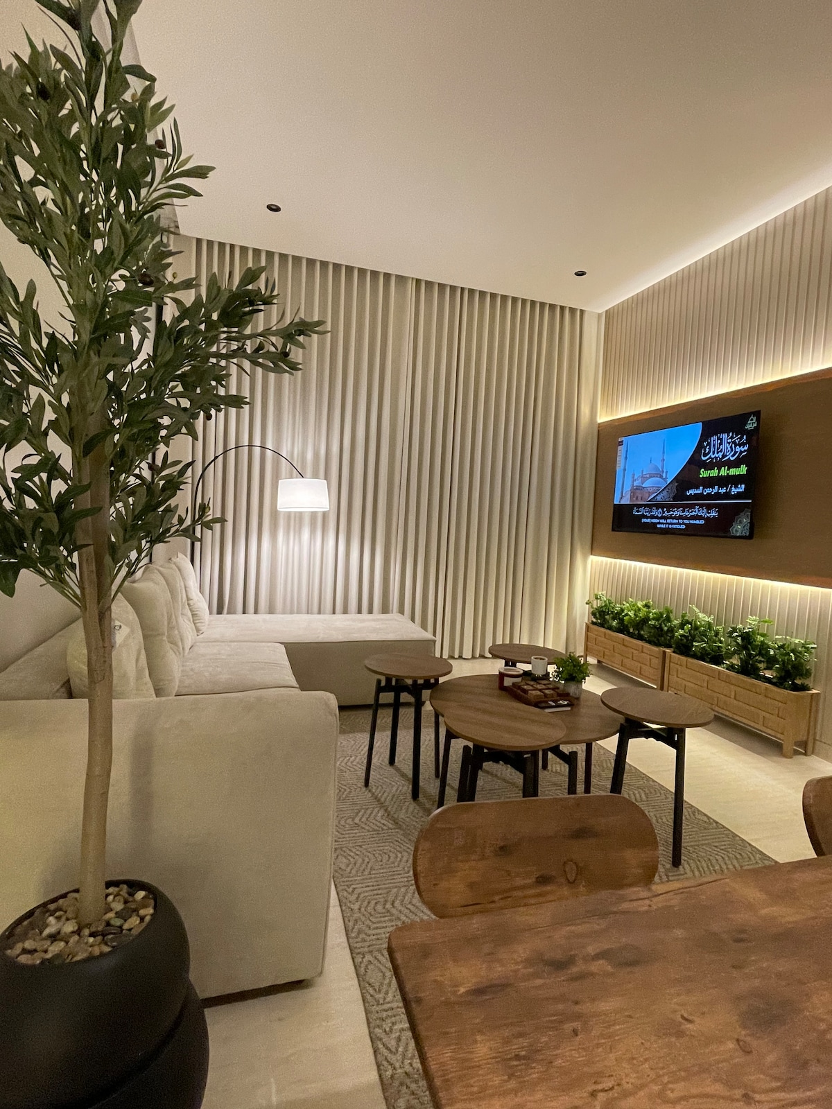 Kısa veya uzun süreli konaklama için sessiz ve pratik bir yer arayan misafirler için ideal, konforlu konaklama ve tam mahremiyet sunan şık ve entegre bir daire. Dairenin Özellikleri: • İki kişilik yataklı rahat yatak odası • Aile için ayrı dinlenme salonu • Tam donanımlı mutfak. • Özel banyo. • Ücretsiz yüksek hızlı internet • Daha fazla esneklik ve mahremiyet için kendi kendine giriş • Güvenlik kameralı özel otopark. Konum: Daire Al Salam – Mabr'da bulunmaktadır, şunlara yakındır: • Çeşitli kafeler ve restoranlar • Halk Köyü • Almousa Tıp Fakültesi