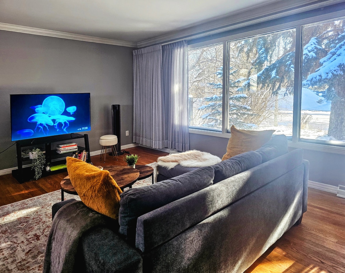 Kanada'nın bu huzurlu köşesinde ayaklarınızı uzatın. Ağaçlar ve vahşi yaşamla çevrili, olgun, yürünebilir bir semtte yer alıyor. Şehrin göbeğinde sessiz bir kaçış! Kaliteli yatak ve nevresim takımları üzerinde dinlenin. Özel çitle çevrili bahçedeki 3 açık hava dinlenme alanında yemek yiyin ve bağlantı kurun. Evcil hayvanlar kabul edilir. Günleri dinlenmiş ve yenilenmiş hissederek karşılayacaksınız. Kahve severler sevin! Keurig, Nespresso, French Press veya klasik filtre kahve, başlangıç için kahve çekirdekleri ve kapsülleri. En hızlı kablosuz internet bağlantısı mevcut.