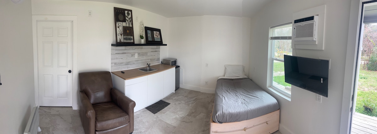 Konforlu yatak, hızlı kablosuz internet bağlantısı, Netflix uyumlu TV, mini buzdolabı ve kahve makinesi gibi tüm temel olanaklarla tam donanımlı büyüleyici özel küçük evimizde rahatlığı deneyimleyin. Tek başına seyahat edenler veya hareket halindeki çiftler için huzurlu bir yer! 2026 FIFA Dünya Kupası için mi seyahat ediyorsunuz? NRG Stadyumu'ndan 24-32 km uzaklıkta ideal bir konumdayız, rahatlamak için mükemmel olan sessiz bir semtte konaklarken dinlenebileceğiniz bir yer sunarken heyecana kolayca erişebilirsiniz.