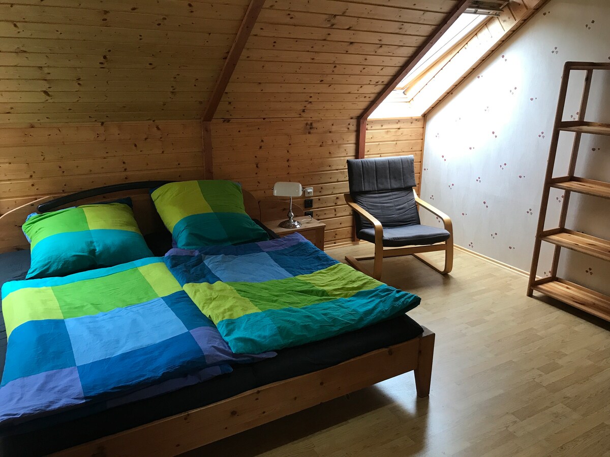 Sevgili misafirler! Sizi ABD ve Bisiklet evimizde ağırlamayı seviyoruz. Hannover & Fair'e giden tramvay istasyonuna sadece 10 dakika yürüme mesafesindedir. Ayrı girişli kendi küçük evinizde yaşıyorsunuz. 2.10m yüksekliğindeki odanın cazibesinin tadını çıkarın. 25 m²' lik güzel odada kalıyorsunuz ve duşlu kendi banyonuz var. Eğlence için futbol masası, dart, TV ve kablosuz internet bağlantısı kullanabilirsiniz. Odada ayrıca buzdolabı, mikrodalga fırın, su ısıtıcısı ve ücretsiz kullanım için bir kahve makinesi bulunmaktadır. Harika manzaralı güzel terasımızın keyfini çıkarın!