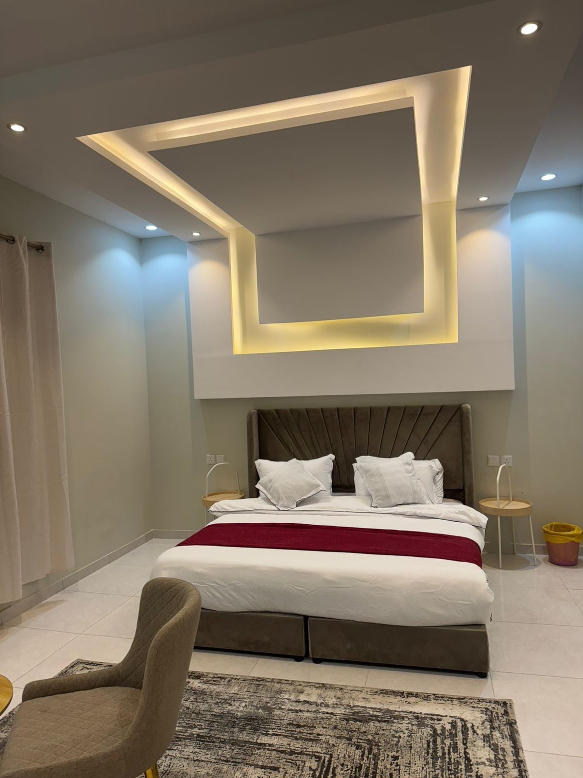 شقة فاخرة تتكون من غرفة نوم وصالة معيشة مزودة بشاشة سمارت ومطبخ صغير تقع الشقة في موقع مميز في حي الوسام بين الشفا والهدا وقريبه من منتزه الردف