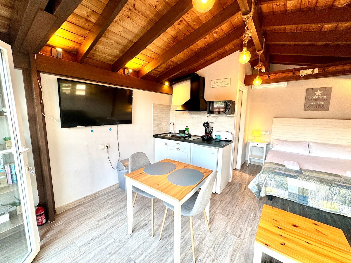 Stüdyo daire , çatı katı tipi, çok rahat . Çiftler içindir. Salon mutfak yatak odası + 1 banyo için 25 m2 alana ve 18 m2 bahçeye sahiptir. Plaja 3,3 km uzaklıktadır ( 5 dakikalık sürüş mesafesinde). Bahçe, ev ve bahçenin iç içe geçtiği geniş bir alanı görsel olarak üreten 3,5 metrelik pencereleri ile eve tamamen entegre edilmiştir.