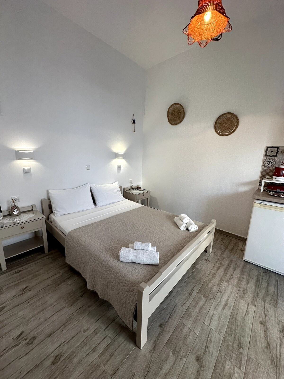 Naxos Kasabası'nın göbeğinde pitoresk bir semtte yer alan, güzel bir özel verandaya ve birçok sanat dokunuşuna sahip, 5 misafire kadar ağırlayabilen benzersiz bir estetik daire. Limana yürüyerek 10 dakika, pazara ve diğer ilgi çekici yerlere (kale, müzeler vb.) ve eğlenceye (barlar, restoranlar vb.) 1-2 dakika mesafededir. Arabasız seyahat ediyorsanız endişelenmeyin; en popüler plajlara ve köylere en yakın otobüs durağı yürüyerek 3 dakikalık mesafededir. Yürüyerek 3 dakikalık mesafede ücretsiz park yeri!