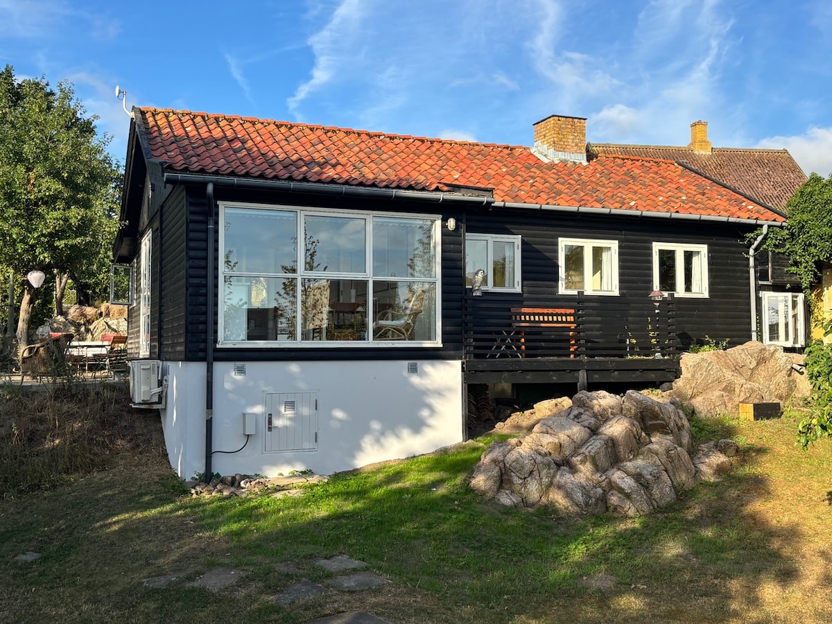 Yeni inşa edilen kırmızı ahşap yazlık ev "Søglimt" ile güzel, huzurlu ve keyifli bir ortamda tatilin tadını çıkarın. Evin adı biraz yanıltıcıdır, çünkü büyük mutfak odasından sadece deniz manzarası değil, aynı zamanda Baltık Denizi'ne 180 derece tam panoramik manzara vardır. Burada, bir bardak soğuk beyaz şarap veya lezzetli bir fincan kahve ile oturup, kayalıklardan denize dalan çocuklara göz kulak olabilir ya da sadece dalgaların sesinin ve görüntüsünün tadını çıkarabilir ve yavaşça geçen gemileri izleyebilirsiniz.