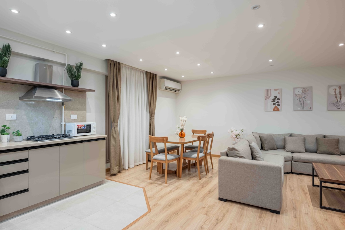 استوديو فاخر بتصميم مودرن وأجواء هادئة، çiftler ve yalnız seyahat edenler için ideal. Dinlendirici bir konaklama için bağımsız küvet, modern aydınlatma ve sıcak ahşap kaplamalar içeren lüks bir stüdyonun keyfini çıkarın. 📍 City Stars Alışveriş Merkezi yakınında birinci sınıf konum – Nasr City ✔️ Akıllı TV ✔️ Hızlı kablosuz internet bağlantısı. ✔️ Klima. ✔️ Tam donanımlı küçük mutfak ✔️ Uzaktan çalışma için çalışma alanı ✔️ Zemin kat – kolay erişim Romantik konaklamalar, iş seyahatleri veya kısa şehir kaçamakları için mükemmel. Temiz, şık ve özel.