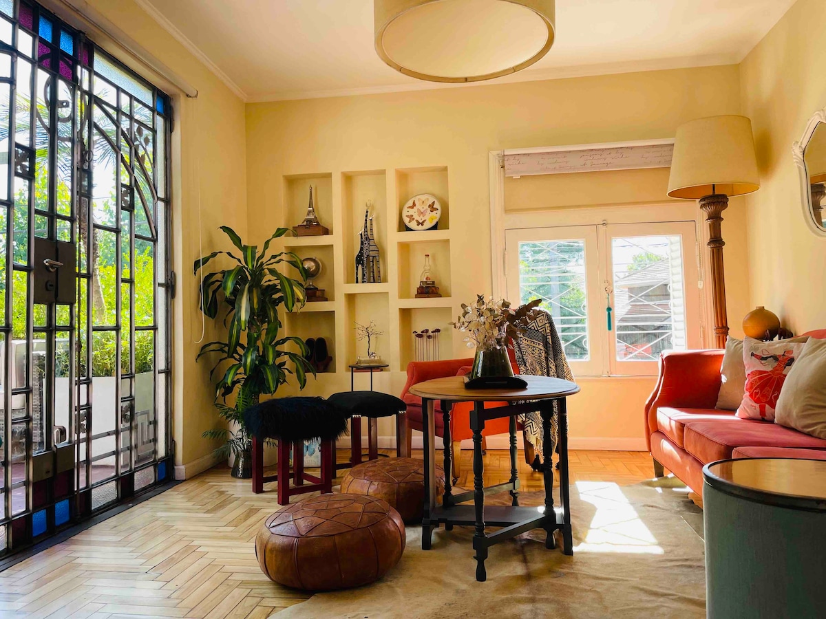 Beautiful, bright apartment with its own garden and barbecue, located on the suburbs of Buenos Aires. Fully equipped with hot/cold air conditioning, full kitchen, workspace with desk and high-speed internet and 52¨ Smart TV. It is located just five blocks away from the train station, 60 minutes from the City of Buenos Aires and 40 minutes from Ezeiza's International Airport. Relax yourself in this unique and quiet accommodation!