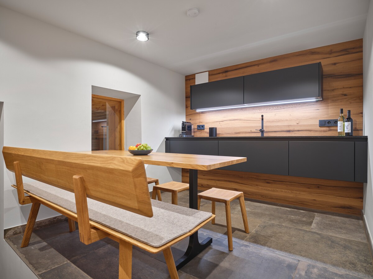 GIPFEL-GLÜCK çatı katına hoş geldiniz. Sunleitn Residence’ın en iyisi: Açık planlı yaşam/yemek alanı ve cam çatılı büyüleyici bir kış bahçesi ile 107 m² (1.153 ft²) alana sahip. Tam donanımlı mutfak ve tam bir mahremiyet içinde 180 derecelik dağ panoramasına sahip geniş terasa erişim. Dağ manzaralı özel geri kazanılmış ahşap Fin saunasında dinlenin. 2 yatak odası, 4 misafire kadar ideal.