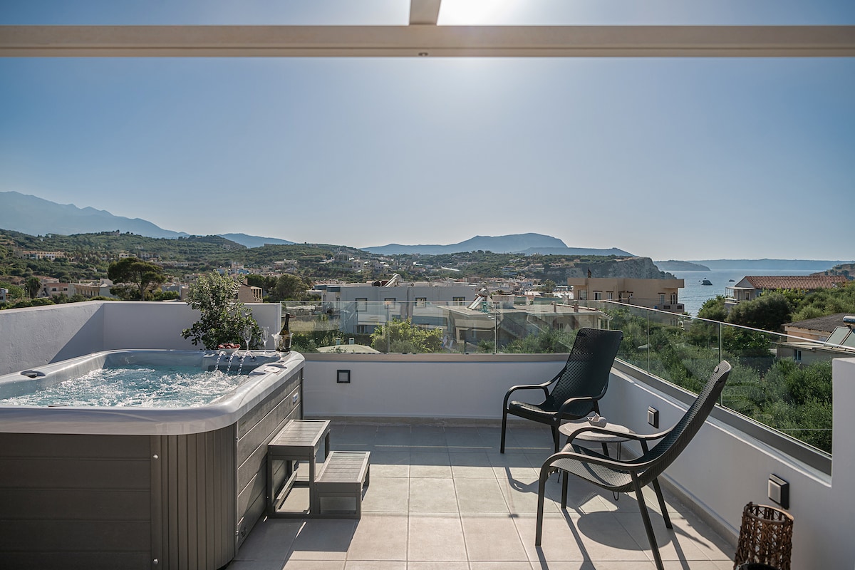 *Lütfen rezervasyon yapmadan ÖNCE mesaj gönderin. Birçok sitede liste yapıyorum ve takvimim güncel olmayabilir. Genellikle 1 saat içinde yanıt veririm* • Özel sonsuzluk havuzu (7,5 m x 4 m). • Deniz/dağ/zeytin tepesi manzarası • Kablosuz internet bağlantısı. • Sessiz ve doğayla çevrili. • Maleme plajına, restorana, pazara arabayla 2 dakika. • Hanya Eski Şehir + Venedik Limanı'na arabayla 15 dakika. • Ünlü Falasarna, Balos ve Elafonissi plajına ulaşmak için stratejik konum.