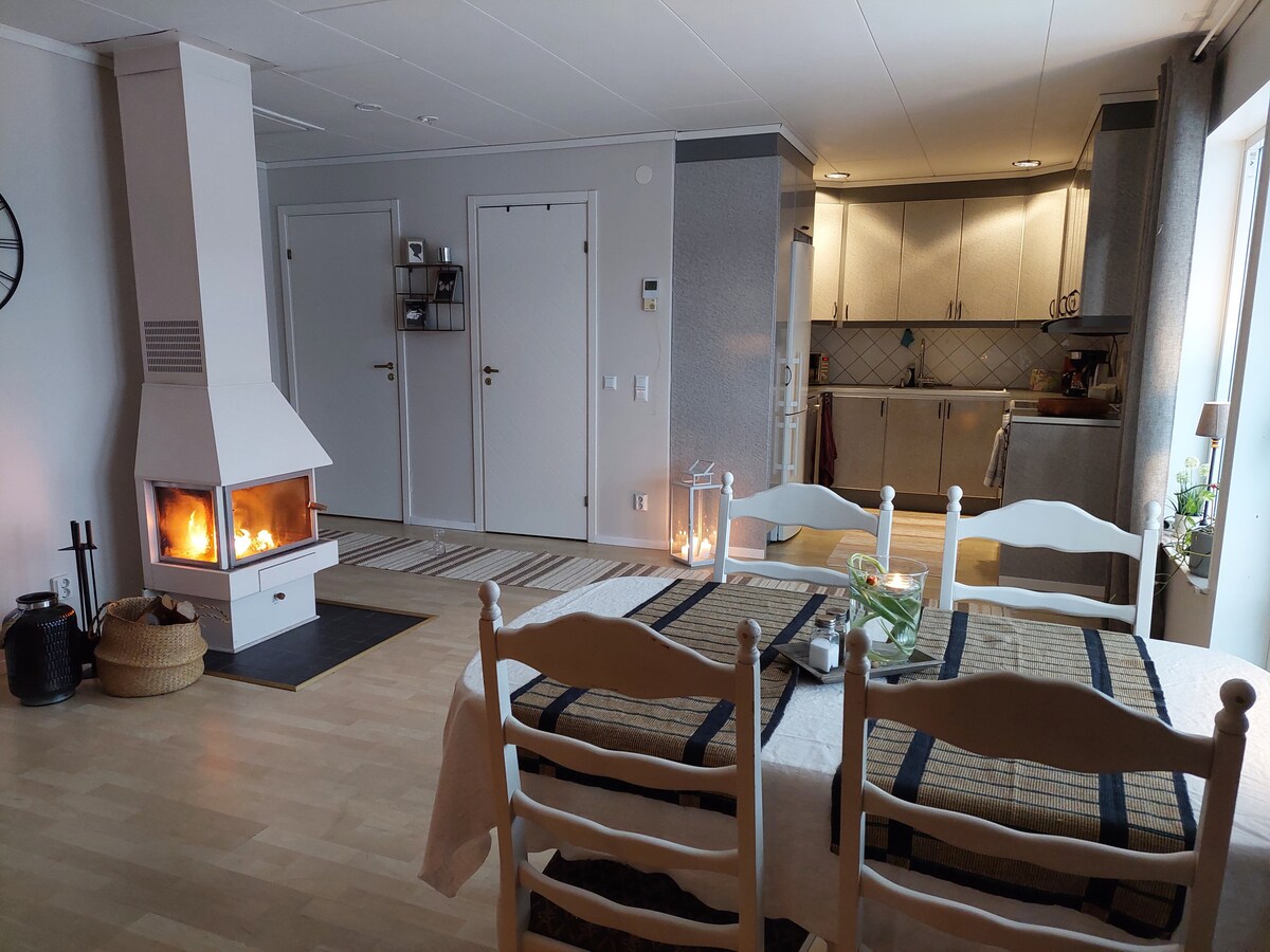 Sundsvall'da merkezi bir konumda, kendi verandası ve park yeri olan sessiz bir yerleşim alanında daire konaklaması. Hem otobüs hem de trenlerle iyi iletişim. Konforlu çift kişilik yatağın yanı sıra 1 -2 ekstra yatak için iyi bir çekyat (yatak çarşafları+havlular dâhil) açık plan. Kendi tuvalet, duş ve ankastre kurutuculu çamaşır makinesi. Buzdolabı, dondurucu, ocak, fırın, kahve makinesi, su ısıtıcısı ve mikrodalga fırın bulunan tam donanımlı mutfak. 1 -3 yetişkin veya 2 yetişkin ve 2 çocuk için mükemmeldir. ChromeCast'li TV mevcuttur.