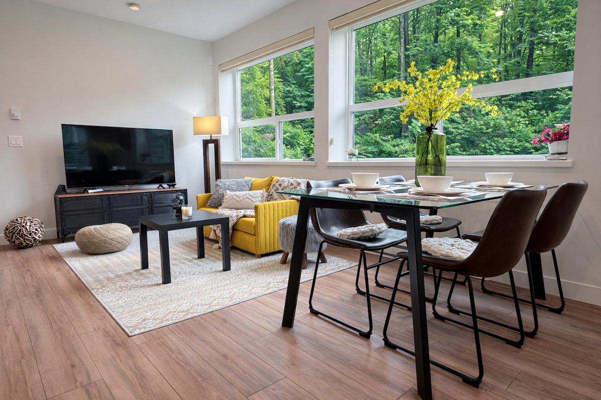 Escape to this modern 1-bed suite in the heart of Silver Valley. Surrounded by breathtaking mountain & forest view. The perfect retreat for nature lovers, those needing a place to stay for business travel, summer vacationers, or for a girls weekend Enjoy the convenience of being close to downtown Maple Ridge, Golden Ears Park, & local gems like The Black Sheep Pub. Private entrance, 1 queen bed & pull out sofa, in-suite laundry, full bath, air conditioning, & access to our entire backyard!