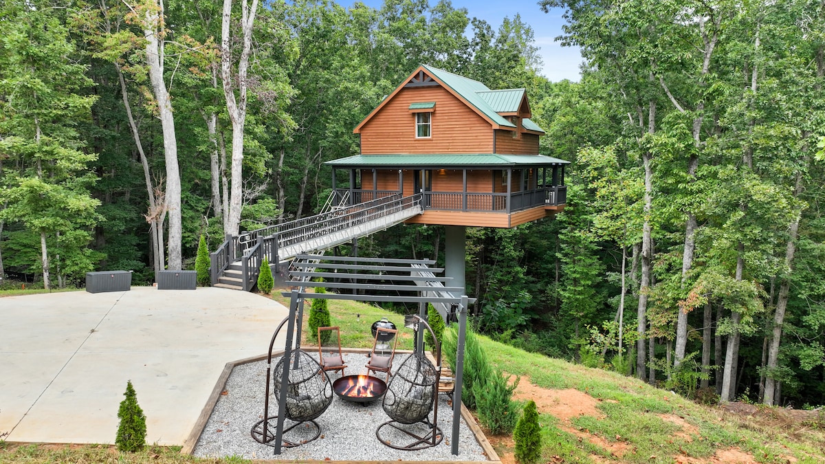 Dragonfly Treehouse: Dahlonega, Georgia'da romantik bir kaçış Georgia'nın Dahlonega kentindeki dingin güzelliğe kaçın ve mükemmel romantik kaçamağınız olan Dragonfly Treehouse'un büyüsünü yaşayın. Ağaçların arasında, kendi özel göletinizin üzerinde. Bu lüks sığınak, unutulmaz bir konaklama için ihtiyacınız olan her şeyi sunar. Sinema Salonu, Jakuzi, Sauna, Nespresso, Küvet, Lüks Duş, Isıtmalı Banyo Zeminleri, Havlupan, Minigolf, Ateş Çukuru, TV ve Yüzer Yataklı Açık Hava Cabana İnzivası.