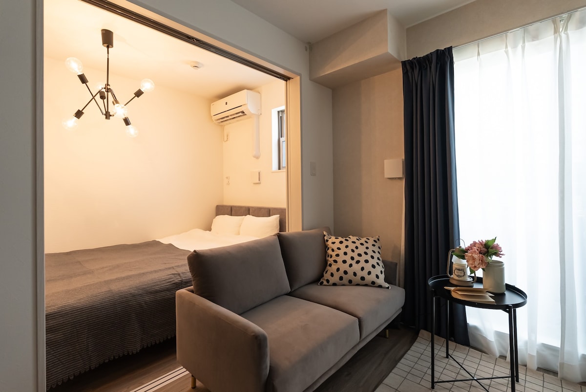 Ruo Yexi house "Oda 201", Osaka Kuromon Pazarı'na 2 dakika, Nihonbashi Metro İstasyonu'na 3 dakika. 43m² tek yatak odalı salon