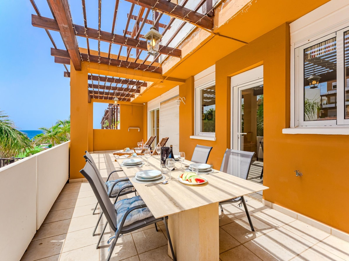 Amarilla Golf'ün göbeğinde harika ve ferah iki yatak odalı, iki banyolu daire. Bu mekân, havuzun ön görünümüne, yandan okyanus manzarasına ve birkaç açık havuza sahip geniş bir teras sunmaktadır. Tamamen ücretsiz havlu, nevresim takımları ve lüks tuvalet malzemeleri sağlanmaktadır. Daire, Amarilla Golf ve Golf del Sur golf sahalarının yanındaki büyük bir sitede bulunmaktadır.
