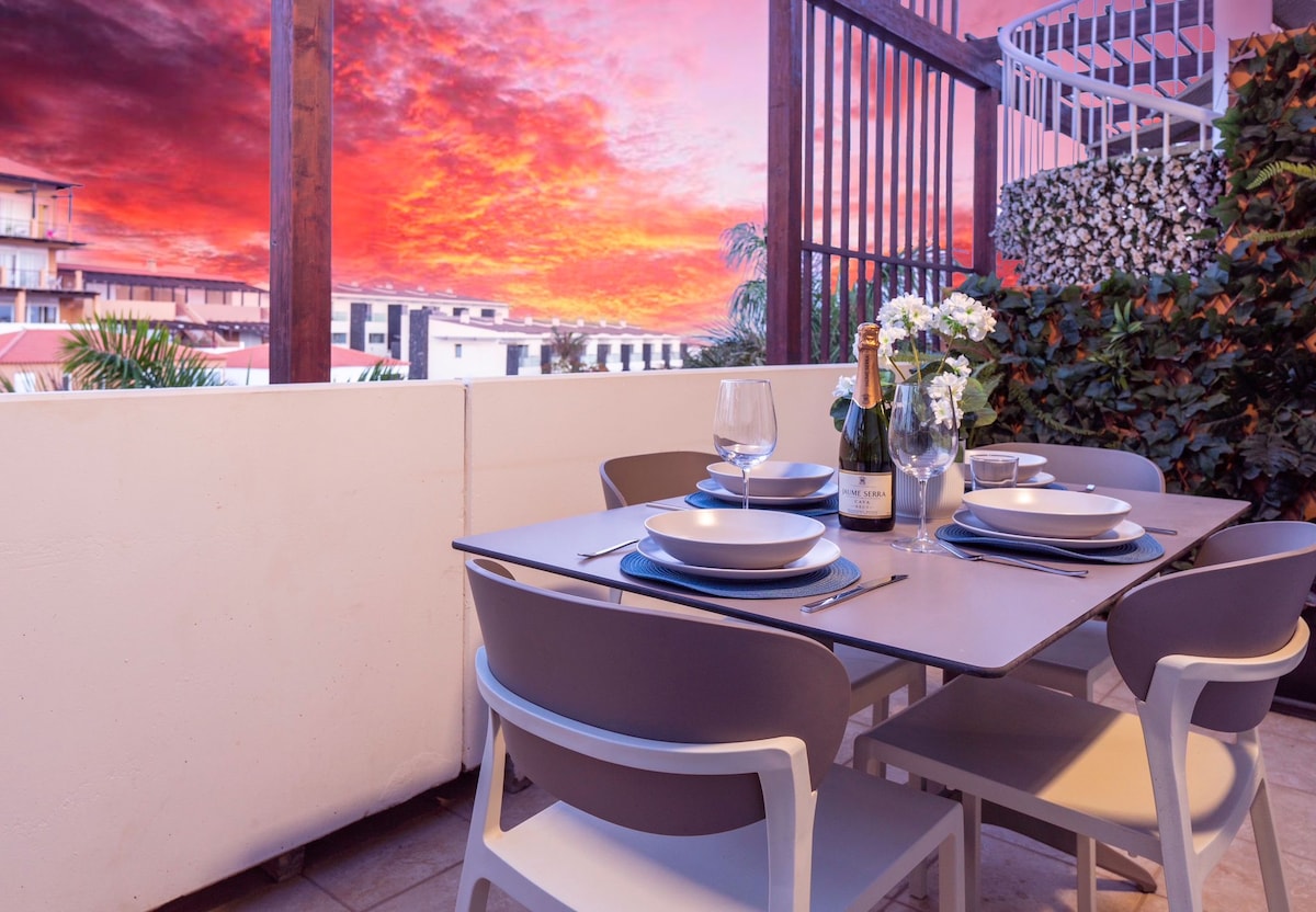 Duvar duvara okyanus manzaralı ve her gece gün batımı olan ön cephe çatı katı. Yeni yenilenmiş, klimalı ve konfor için tasarlanmıştır: birinci sınıf çarşaflı çift kişilik yatak, yağmur duşu, karartma perdeleri ve elektrikli çardak. Tam donanımlı bir mutfakta (bulaşık makinesi, fırın, Nespresso) yemek pişirin, ardından kendi şezlonglarınızla okyanus kıyısındaki büyük bir havuzda dinlenin. Hızlı fiber internet ve okyanus manzaralı çalışma alanı. Playa de la Arena ve sahil restoranlarına yürüyün. Girişin önündeki sokakta ücretsiz otopark.