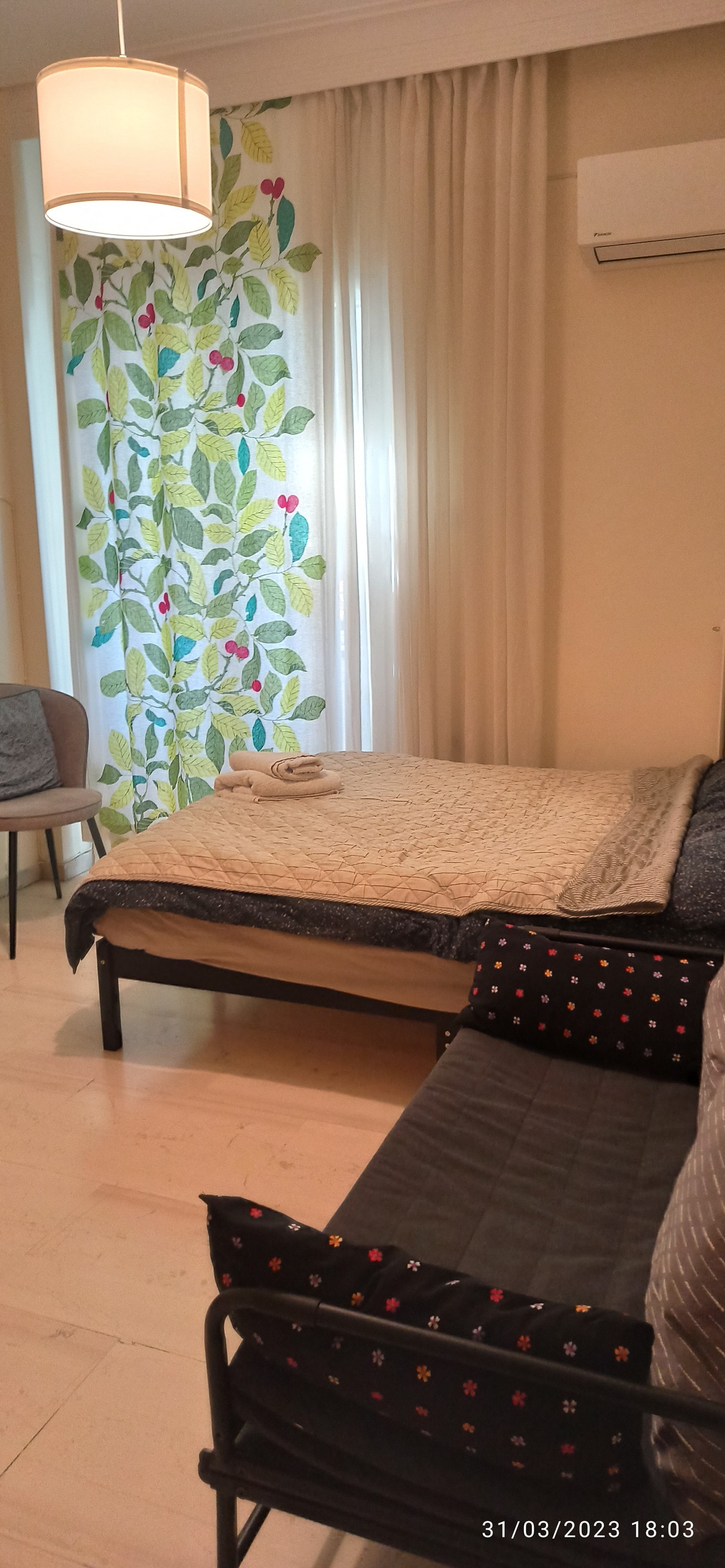 Volos'taki yeni dairemize hoş geldiniz! Bu konuksever dairede, birinde çift kişilik yatak, diğerinde tek kişilik yatak olmak üzere iki yatak odası ve ihtiyaçlarınıza göre konaklama seçenekleri sunan rahat bir çekyat bulunmaktadır. Geniş oturma odası yemek odasıyla birleşerek dinlenme ve yemek için harika bir atmosfer sunuyor. Son olarak, ev yapımı yemeklerin hayranları için indüksiyonlu ocaklar bulunmaktadır.