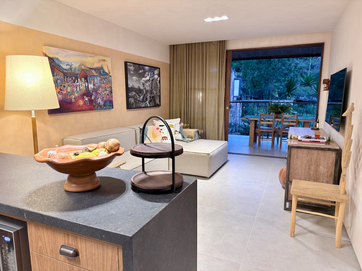 Lar Aconchego: Bir dizi mükemmel konfor sağlamak için özen ve özenle tasarlanmıştır. Ünlü gam Arquitetos stüdyosu tarafından planlanmış ve dekore edilmiş bu minimalist daire, Diamantino Residence'ın güzelliğini vurgulayarak mimariyi ve doğayı uyumlu hale getirmek için tasarlanmıştır.