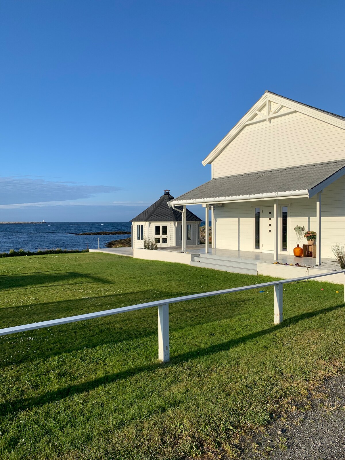Sahildeki gece yarısı güneşi evi.