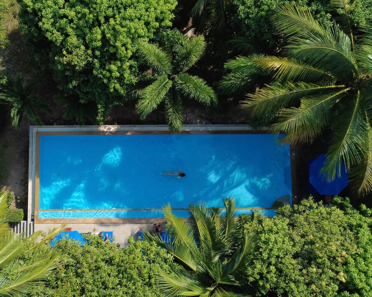 Bir servet ödemeden kendin yap Solo Retreat, iyi WiFi ile bu sevimli, rahat, denize çok yakın, hemen önünde dingin bir plajı olan ve doğayla yürüyüşe çıkmak ve sessizlik içinde vakit geçirmek için dağa kısa yürüyüş mesafesinde olan bu sevimli, rahat, denize sıfır, klimalı bungalovda kalın. Doğanın iyileştirici gücüne inanan 10'dan fazla olmayan uluslararası misafirlerin sakin ve huzurlu atmosferi. Toplu taşıma, kafe ve restoranlar, meyve dükkanı, motosiklet kiralama ve tur ile uygun konum. *Katı 1 Yetişkin*