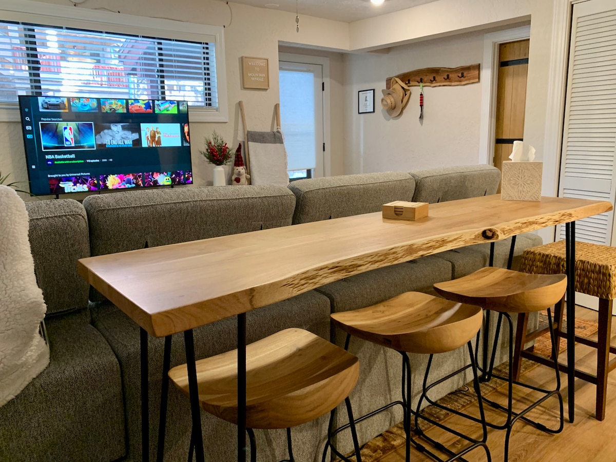 Daha geçen yıl yenilendi! Angel Fire'daki en havalı konut olacak! 😎 Bu eğlenceli buluşma, Pinetree Commons kompleksinin ormanlarında yer alıyor. AF Resort'tan sadece 2 blok ötede. Kayak, bisiklet, yürüyüş, golf ve daha fazlasına yakın! Bir içki alın ve 2 açık hava balkonundan birinin keyfini çıkarın ya da ateşin yanında rahatlayın. İçerisi eğlenceli ve davetkâr... Eklektik duvar resimleri ve dekoruyla bölgedeki her şeyden farklı bir deneyim sunuyor! Aileler/arkadaş grupları için mükemmel! 😊