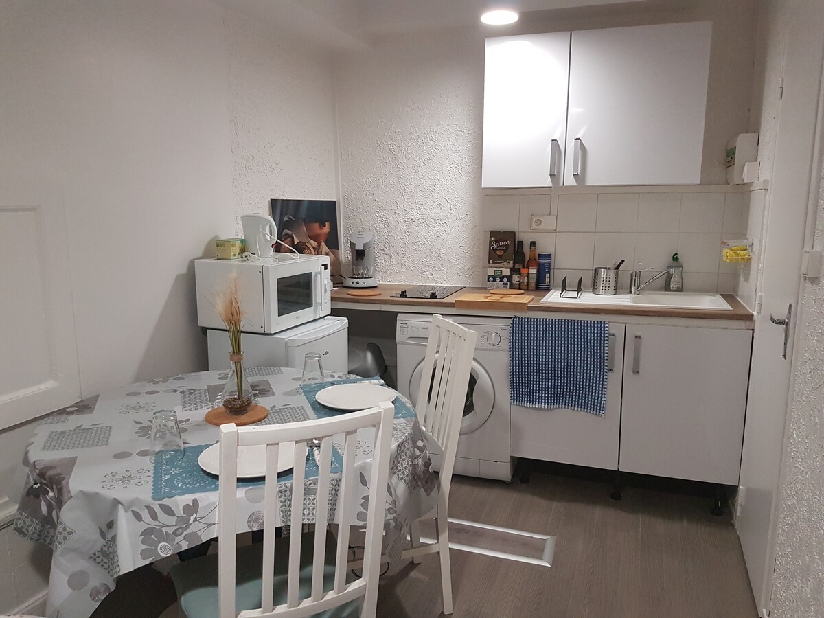 Şehir merkezine bir taş atma mesafesinde, tüm olanaklara yakın, 68 m2 'lik bu sessiz ve zarif konaklama yerinde çift olarak veya yalnız olarak rahatlayın Çok güzel bir daire, 4. katta asansörü yok. Olağanüstü manzara, tüm gün güneş ışığı - Mutfak tam donanımlı yeni -1 salon 3 kişilik kanepe - 140 'ta 1 yatak, çarşaf + giyinme odası. -1 havlu +tuvaletli duş -1 çamaşır makinesi, kurutma makinesi -1 rezervasyon sırasında istekte bulunmak için katlanır çocuk katlanır yatağı - İnternet+fiber TV - Gerekirse -1 dağ bisikleti