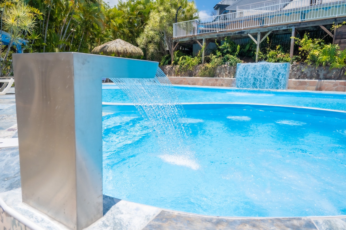 Natural Chic & Tropical Serenity La Source Ecolodge is an eco-friendly retreat where lush tropical nature meets the comfort of a chic hotel to create a unique experience. Enjoy an elegant space of nearly 100 m², featuring a kitchen bar, a double bedroom, and an outdoor shower with breathtaking ocean views. High-speed Starlink Wi-Fi is available throughout the property. We will send you our welcome guide upon booking. Cleaning fees are included in our rates.