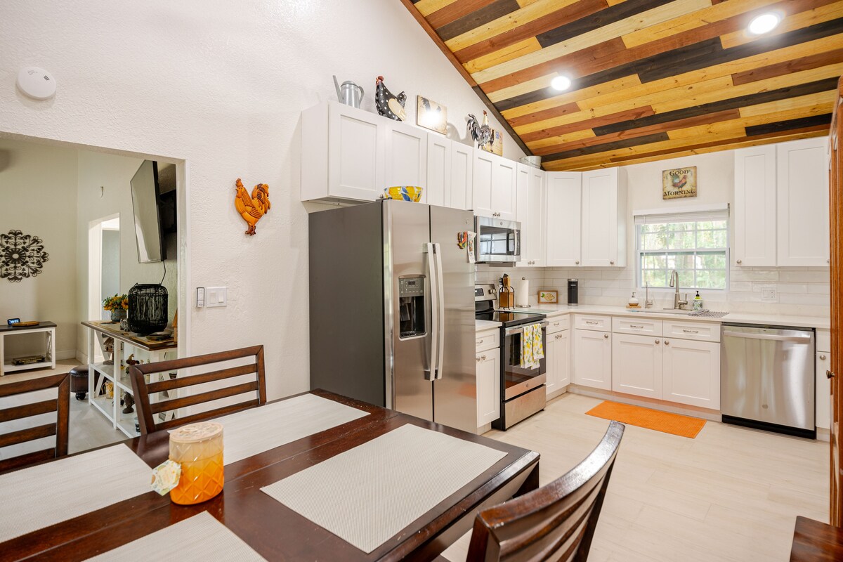 Marion County'deki en iyi Airbnb'lerden biri! Atların ortasında bu sakin ve şık mekânda arkanıza yaslanın ve rahatlayın. Kahvenizi yudumlarken veya verandada bira içerken sizi çevreleyen doğayı deneyimleyin. Macera peşinde misiniz yoksa tarihi eski Florida'yı görmek mi istiyorsunuz? Herhangi bir yöne 30-60 dakikalık bir sürüş sizi tarihi kaynaklardan ve ulusal ormanlardan en yüksek puanlı Florida Üniversitesi'ne veya Dünya Binicilik Merkezi'ne götürür. Bol miktarda at ve vahşi yaşam var! Burası uzak bir yer!