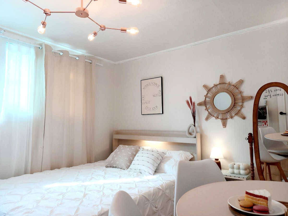 인스타 : moonlight_stay_ 💗1시간 레이트 체크아웃 이벤트 💗 - 늦은 체크아웃 이벤트를 원하시면 예약 후 메세지주세요😉 (늦어도 체크아웃 전날에 말씀해주세요!) 🌸피크닉감성세트 무료대여 이벤트🧺 방화수류정🪷 1-2분 거리에 있는데 피크닉이 빠질 수 없죠!☺️ 그래서 준비한 피크닉감성세트! 업체에서 돈내고 대여하지마세요🙅♀️ 구성품이 궁금하시면 언제든 문의주세요🙆♀️ 🤍체크인 전에 무인락카함에 짐을 보관할 수 있어요🤍 -예약 후 미리 말씀해주세요⭕️ 🌿숙소 소개 행리단길 5분거리에 있는 프렌치 감성숙소에요✨ 버스정류장도 근처라 뚜벅이분들도 접근하기 용이하답니다☺️ 오래된 구옥을 직접 인테리어 하였고, 아늑한 공간의 나무벽 거실공간이 주는 따뜻한 분위기에 머물러보세요! 두개의 객실들은 파스텔계열의 색감으로 날씨와 상관없이 편안한 느낌을 준답니다