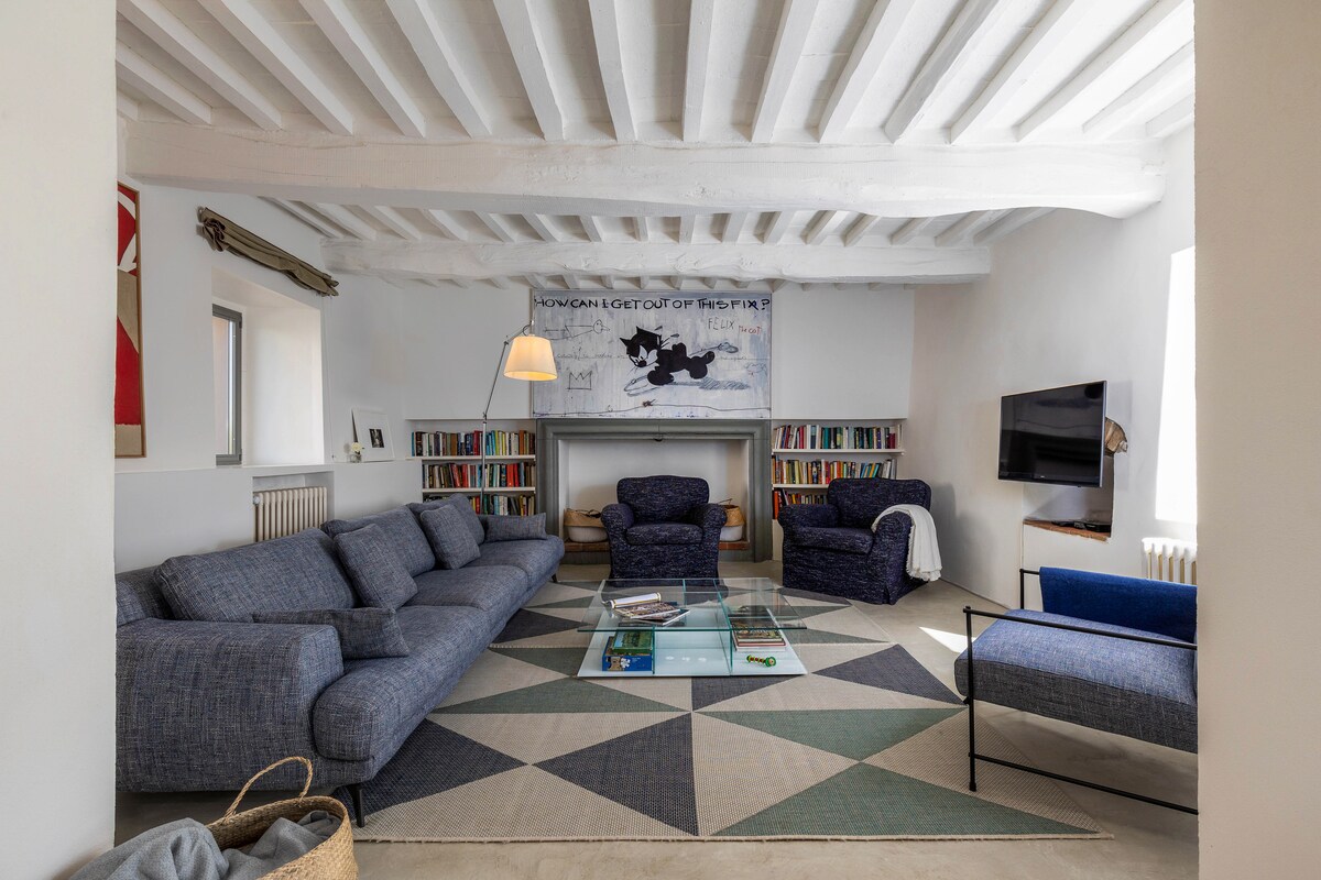 Toskana'da muhteşem manzaralı, yakın zamanda restore edilmiş, 150 yıllık harika Casale. İki yatak odası, çift kişilik çekyatlı geniş bir oturma odası, 85 inç akıllı TV, çalışma masalı bir köşe ve tam donanımlı bir mutfak. Dışarıda taş bir masa, kocaman bir bahçe, bir çardak, son teknoloji ürünü ısıtmalı jakuzi (varsa isteğe bağlı) ve harika bir 6 x 12 sonsuzluk havuzu. Mülkün tamamı çitle çevrilidir. Evcil hayvan dostudur.