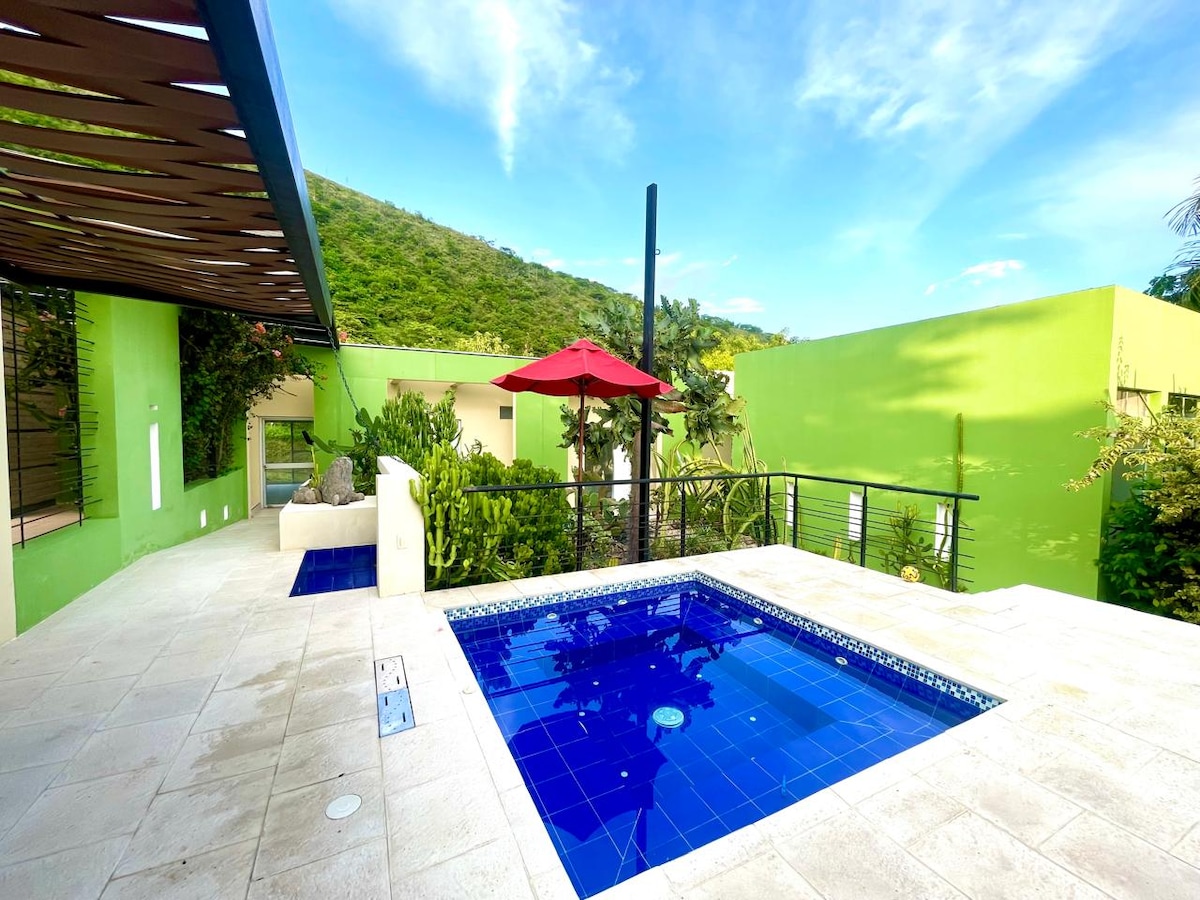 Casa Palo de Agua, zaferle Anapoima'nın merkezine sadece 5 dakika mesafededir. Gürültü ve rutinden uzaklaşmak için doğa ve temiz hava ile çevrili sessiz, rahat bir yerin keyfini çıkarmak için misafirin konforunda ve zevkinde her ayrıntı düşünüldü. Jakuzili harika bir havuzumuz ve tamamen dinlenmek için muhteşem bir dağ manzaramız var. Aileniz veya arkadaşlarınızla keyfini çıkarın. Tüm odalar kapılı ve yenilenmiştir.