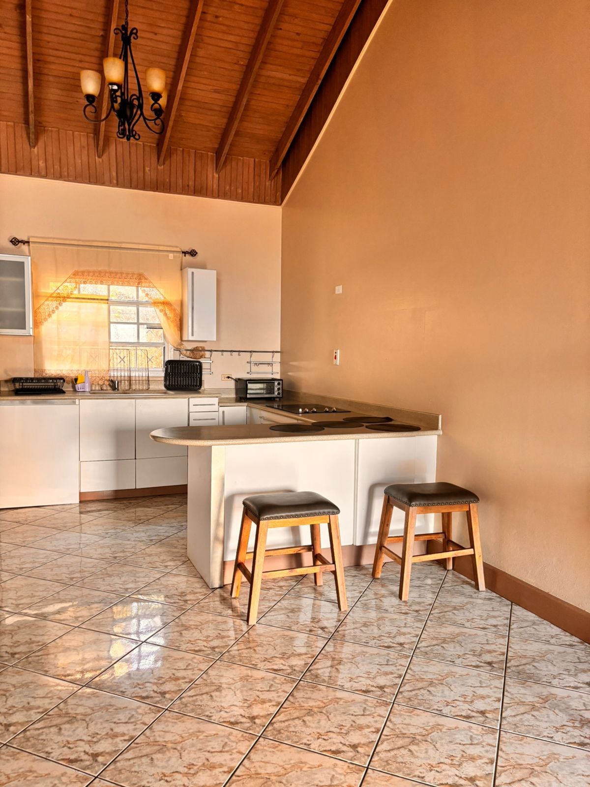 Karayip Denizi'nin muhteşem manzarasına sahip, yakın zamanda yenilenmiş 1 yatak odalı ferah daire. Dik bir tepede yer alır, şehir merkezine ve Harmony Plajı'na 7 dakika yürüme mesafesinde, Dr. Cave'e 25 dakika yürüme mesafesinde, havaalanına arabayla 5 dakika mesafededir. Dairede sadece yatak odasında klima ve salonda tavan vantilatörü bulunmaktadır. Diğer uyku düzenlemesi çekyatlıdır. Bulaşık makinemiz ve fırınımız için gerekli parçaları değiştiriyoruz, ancak henüz adada kaynak sağlayamıyoruz.